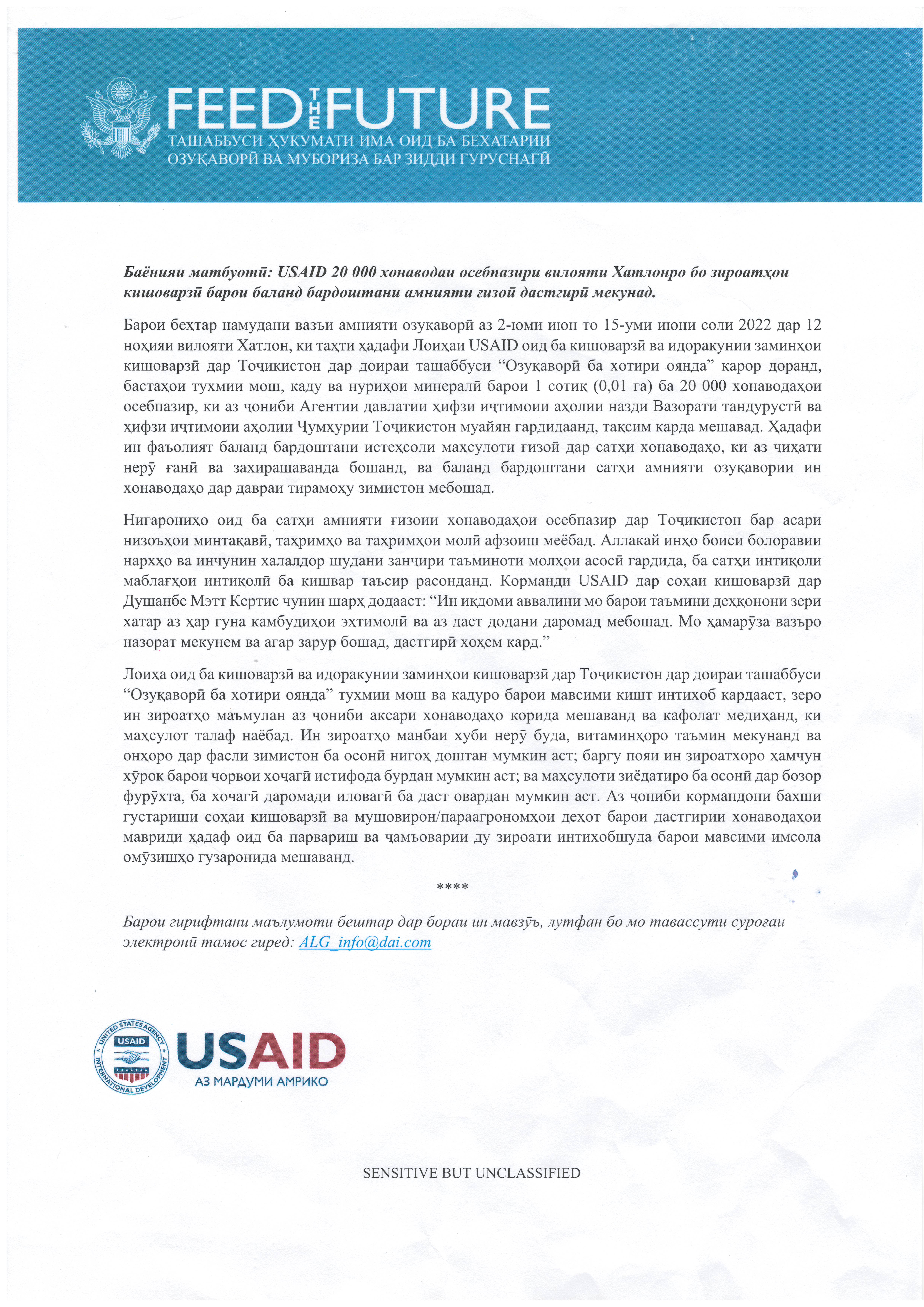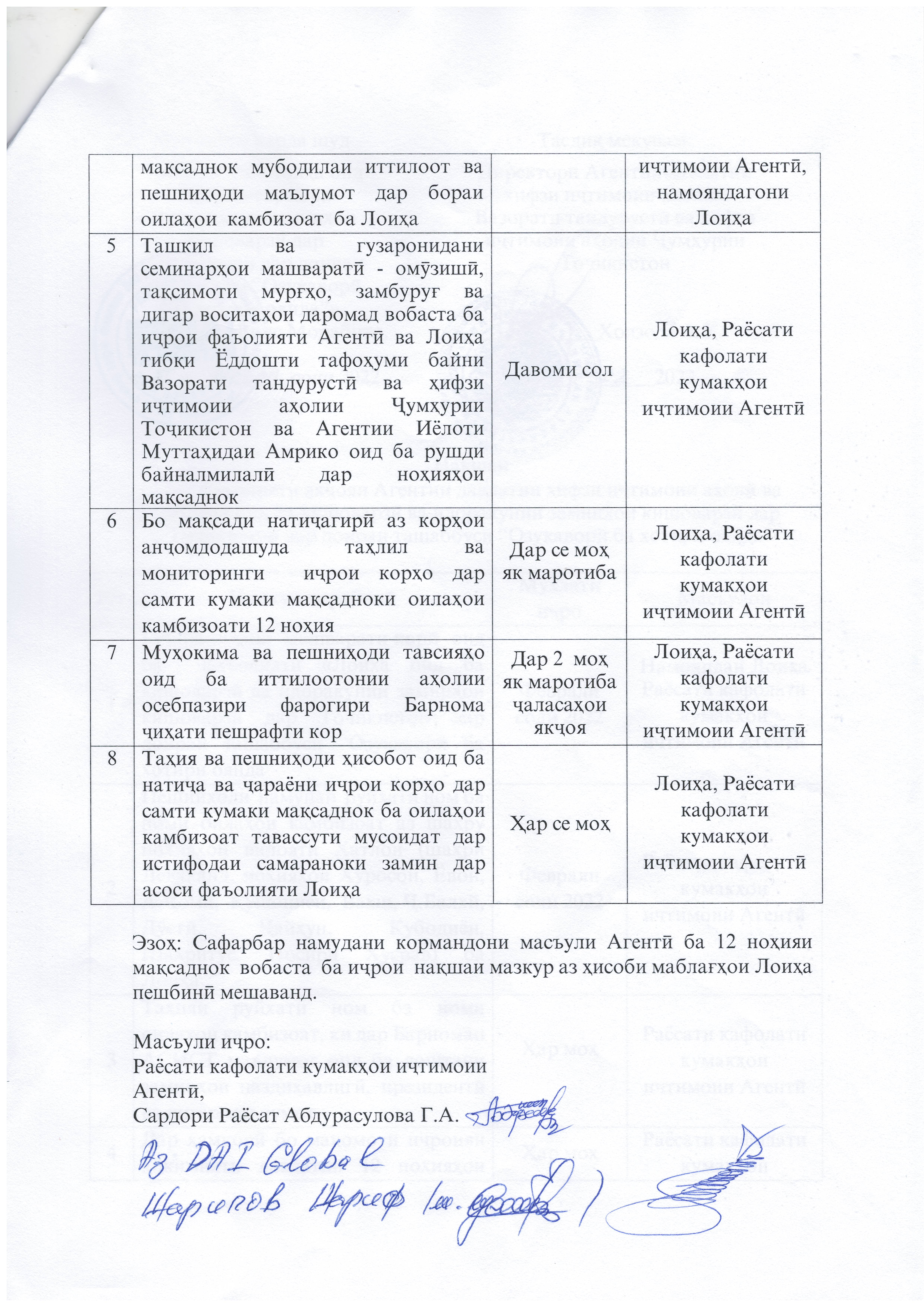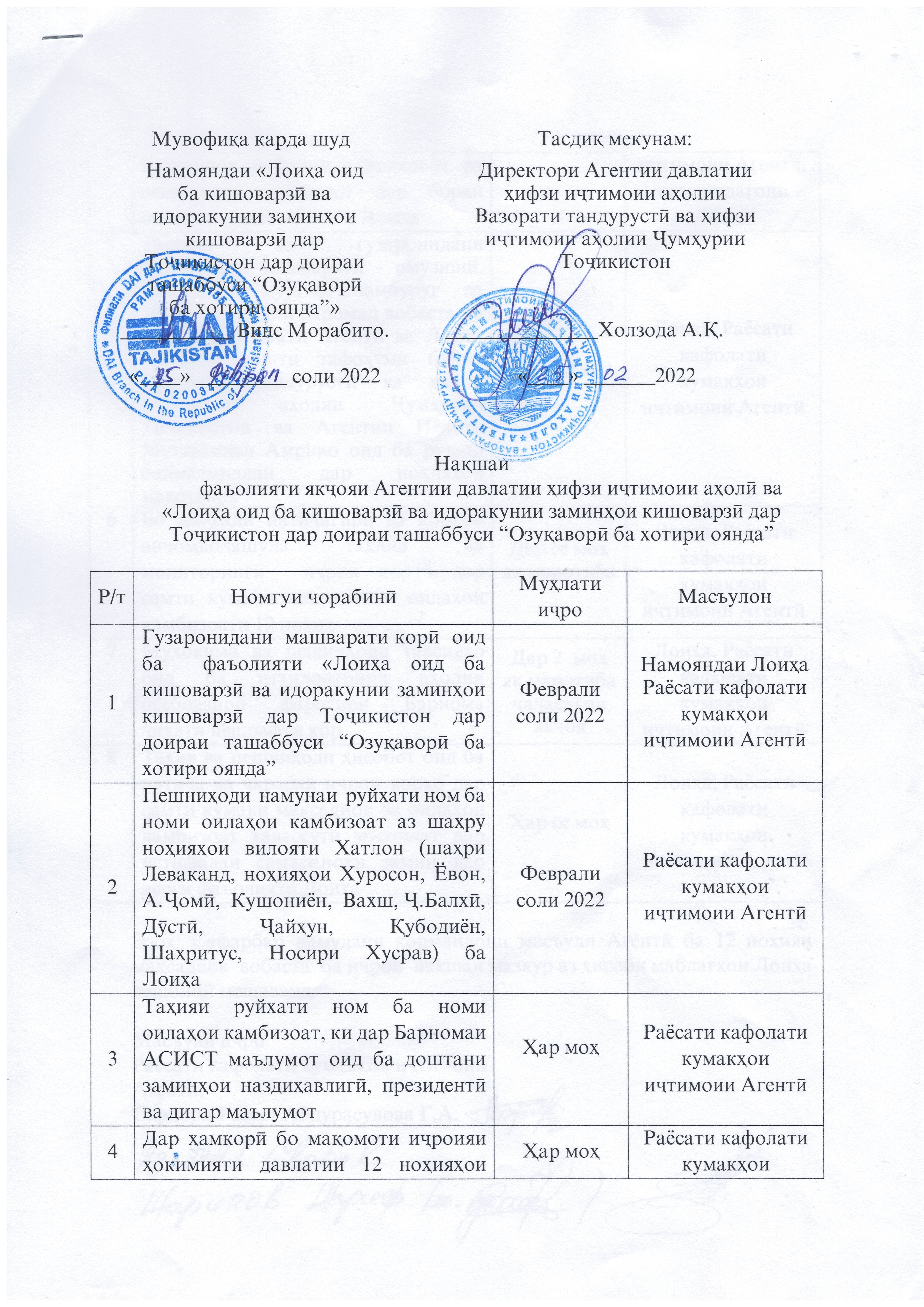 ЛОИҲА ОИД БА КИШОВАРЗӢ ВА ИДОРАКУНИИ ЗАМИНҲОИ КИШОВАРЗӢ ДАР ТОҶИКИСТОН ДАР ДОИРАИ ТАШАББУСИ “ОЗУҚАВОРӢ БА ХОТИРИ ОЯНДА”